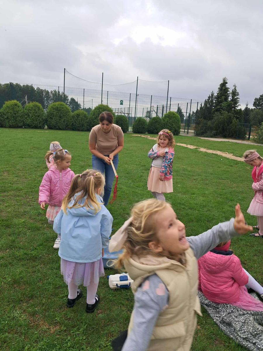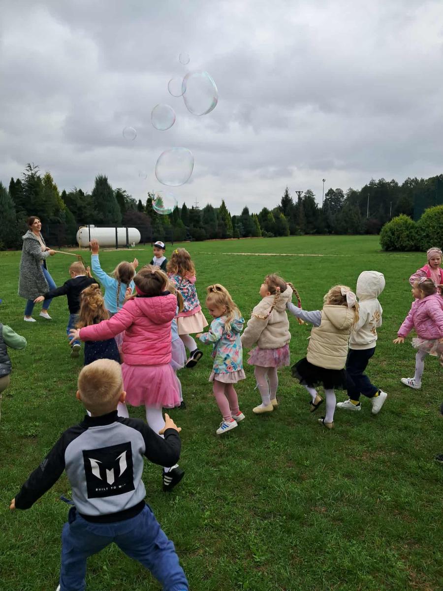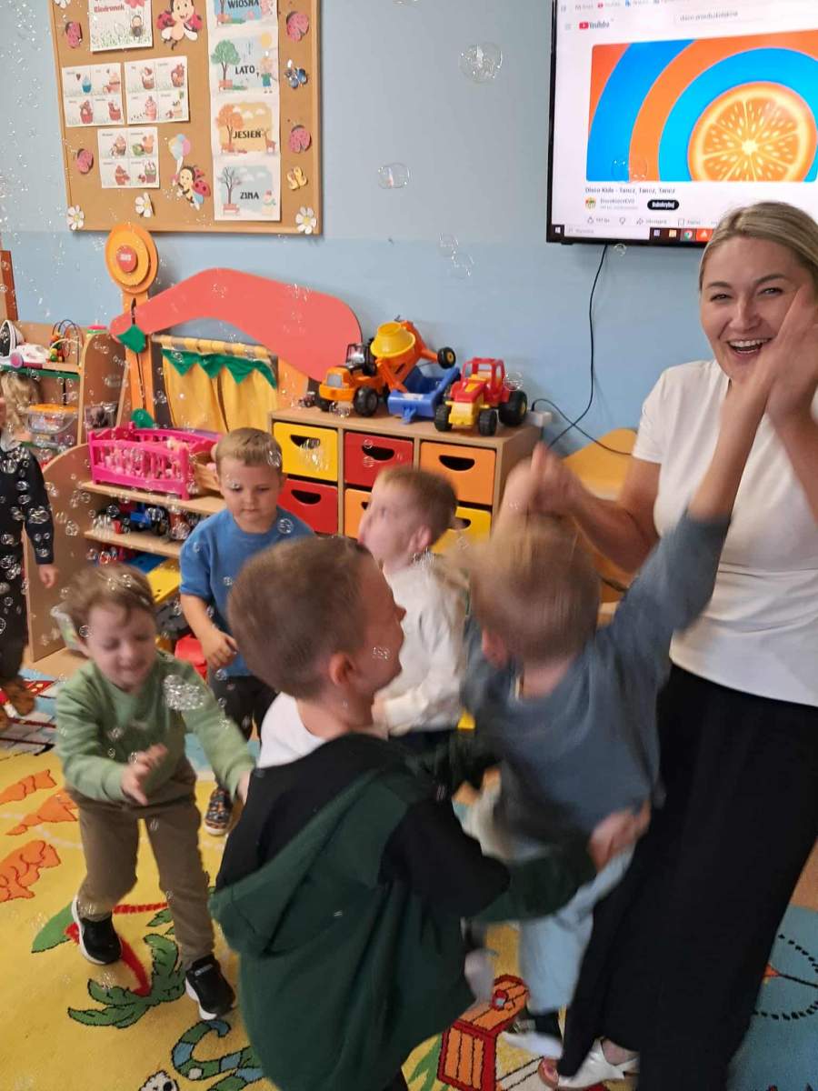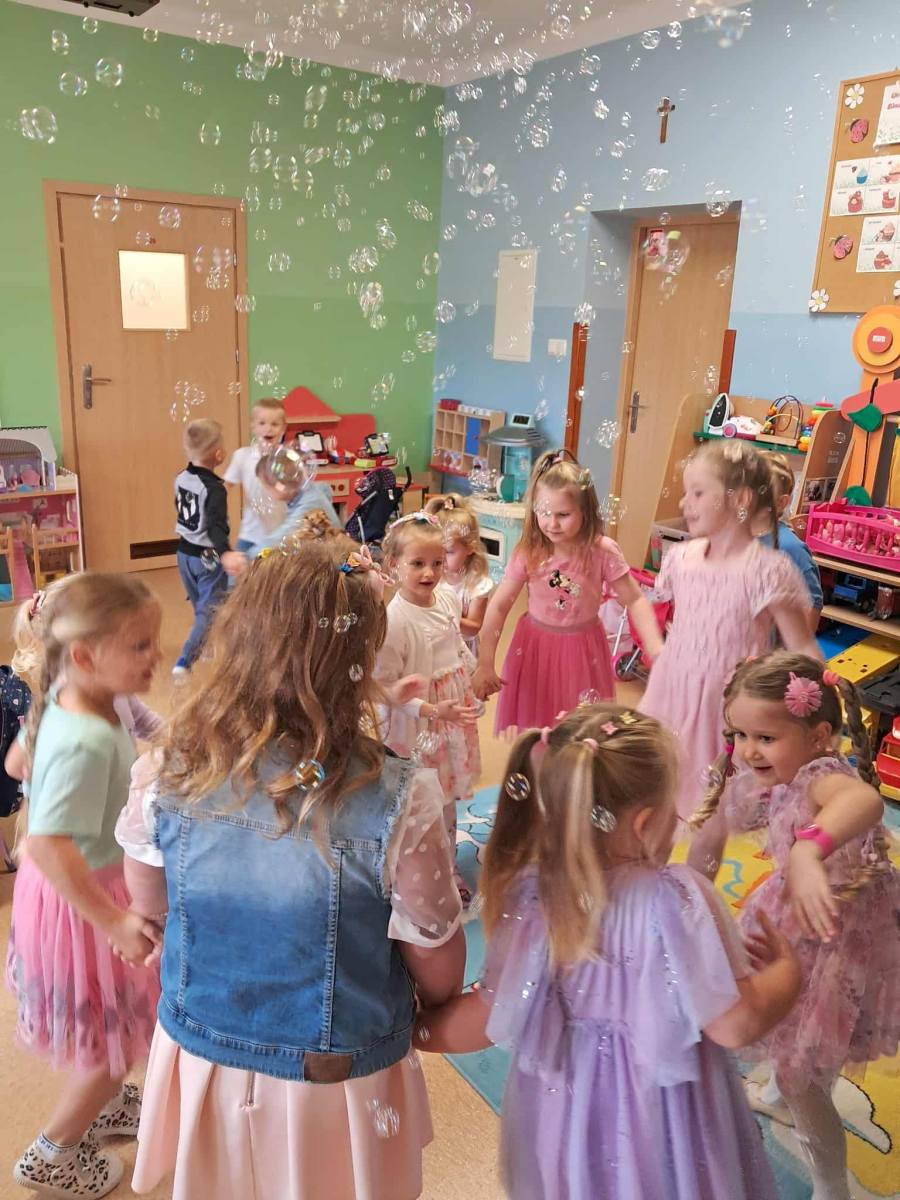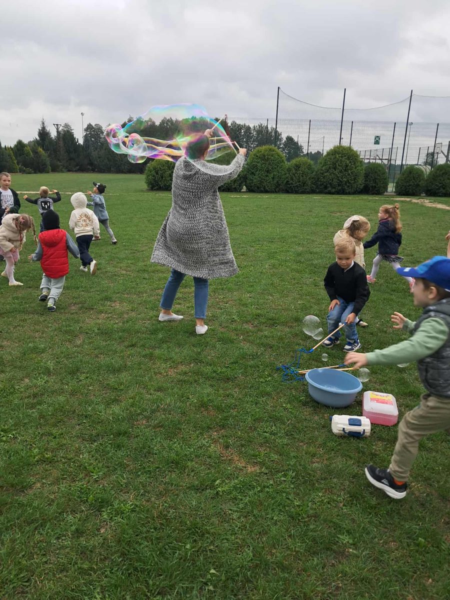 19 września 2025 roku w naszym przedszkolu w Starej Róży obchodziliśmy Dzień Przedszkolaka – jedno z najbardziej radosnych świąt w roku! Od samego rana w salach panowała wyjątkowa atmosfera – dzieci przyszły uśmiechnięte i pełne energii, gotowe na wspólną zabawę. W programie nie zabrakło tańców i wesołych zabaw muzycznych, które sprawiły, że na twarzach wszystkich maluchów pojawiły się szerokie uśmiechy. Po wspólnych tańcach na dzieci czekał słodki poczęstunek. Kulminacyjnym punktem dnia była zabawa z bańkami mydlanymi – wielkie, kolorowe bańki unosiły się nad placem szkolnym, a dzieci z radością próbowały je łapać i tworzyć własne. Śmiechu i zachwytów nie było końca!