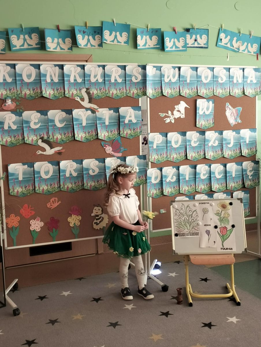 23 marca w oddziale zerowym odbył się konkurs recytatorski pod tytułem „Wiosna w poezji dziecięcej”. Wydarzenie to zgromadziło wielu małych uczestników, którzy z ogromnym zaangażowaniem prezentowali wybrane przez siebie wiersze o tematyce wiosennej. Dzieci zachwyciły publiczność piękną dykcją, odwagą oraz interpretacją utworów. Atmosfera była radosna i pełna pozytywnej energii. Konkurs nie tylko rozwijał zdolności językowe, ale także budował pewność siebie najmłodszych. Na zakończenie wszyscy uczestnicy zostali nagrodzeni brawami i drobnymi upominkami.