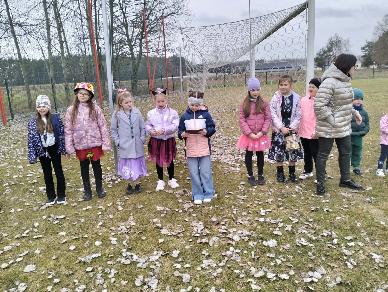 Dla uczniów klas 4–8 przygotowano konkurs „1 z 10” z języka angielskiego, który dostarczył wielu emocji i pozwolił uczestnikom sprawdzić swoje umiejętności językowe. Młodsze klasy natomiast wzięły udział w tradycyjnym powitaniu wiosny poprzez wspólne palenie Marzanny.