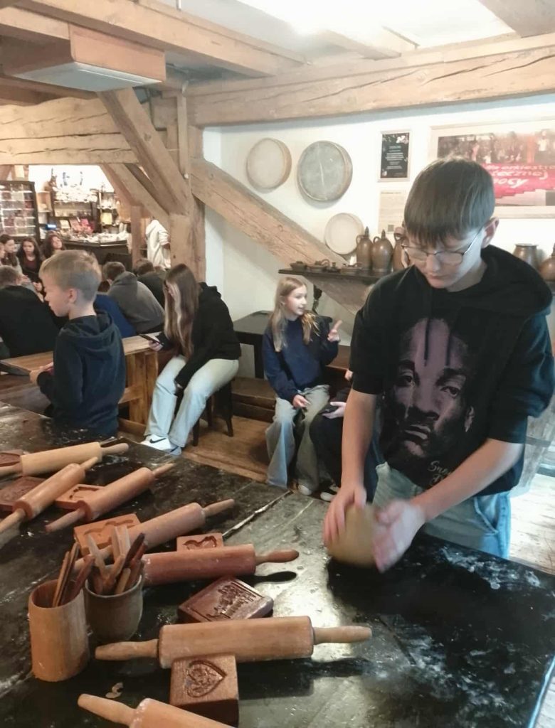 Ostatniego dnia po śniadaniu odwiedziliśmy Dom Mikołaja Kopernika, gdzie poznaliśmy wiele informacji o życiu i odkryciach słynnego astronoma. Później udaliśmy się do Muzeum Piernika. Na miejscu uczestniczyliśmy w warsztatach, podczas których wyrabialiśmy własne pierniki według tradycyjnych receptur. Było to doskonałe zakończenie naszej wycieczki – każdy zabrał ze sobą samodzielnie wykonany wypiek.
